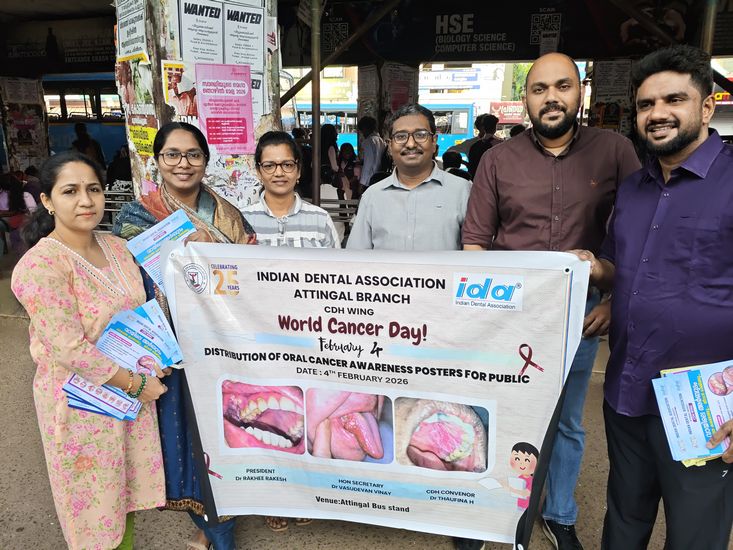 IDA Attingal branch CDH wing observed World Cancer dayOn February 4th 2026,by distributing Oral Cancer Awareness posters to public at various venues, Mr M Pradeep, Municipal Chairperson inaugurated the programme.